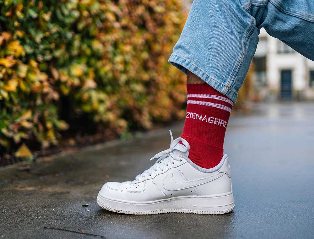 ● Antwerps met trots: De populaire rode sokken met het opschrift 'KZIEN-A-GEIRE' (Hey! Ik zie u graag!). Recht uit Antwerpen.